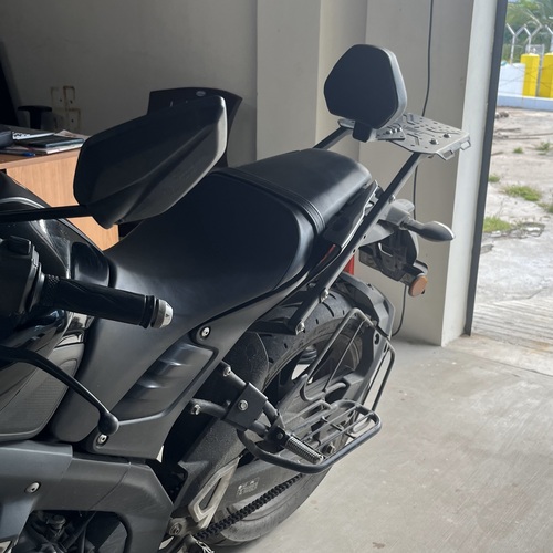 If you're looking to upgrade your Yamaha MT-15 with essential touring accessories, the Jem India Saddle Stay, Top Rack, and Pillion Backrest are a great choice!